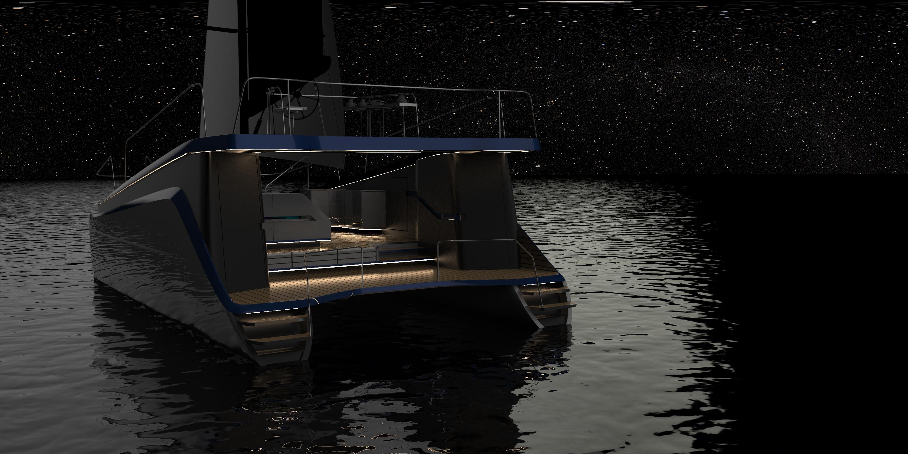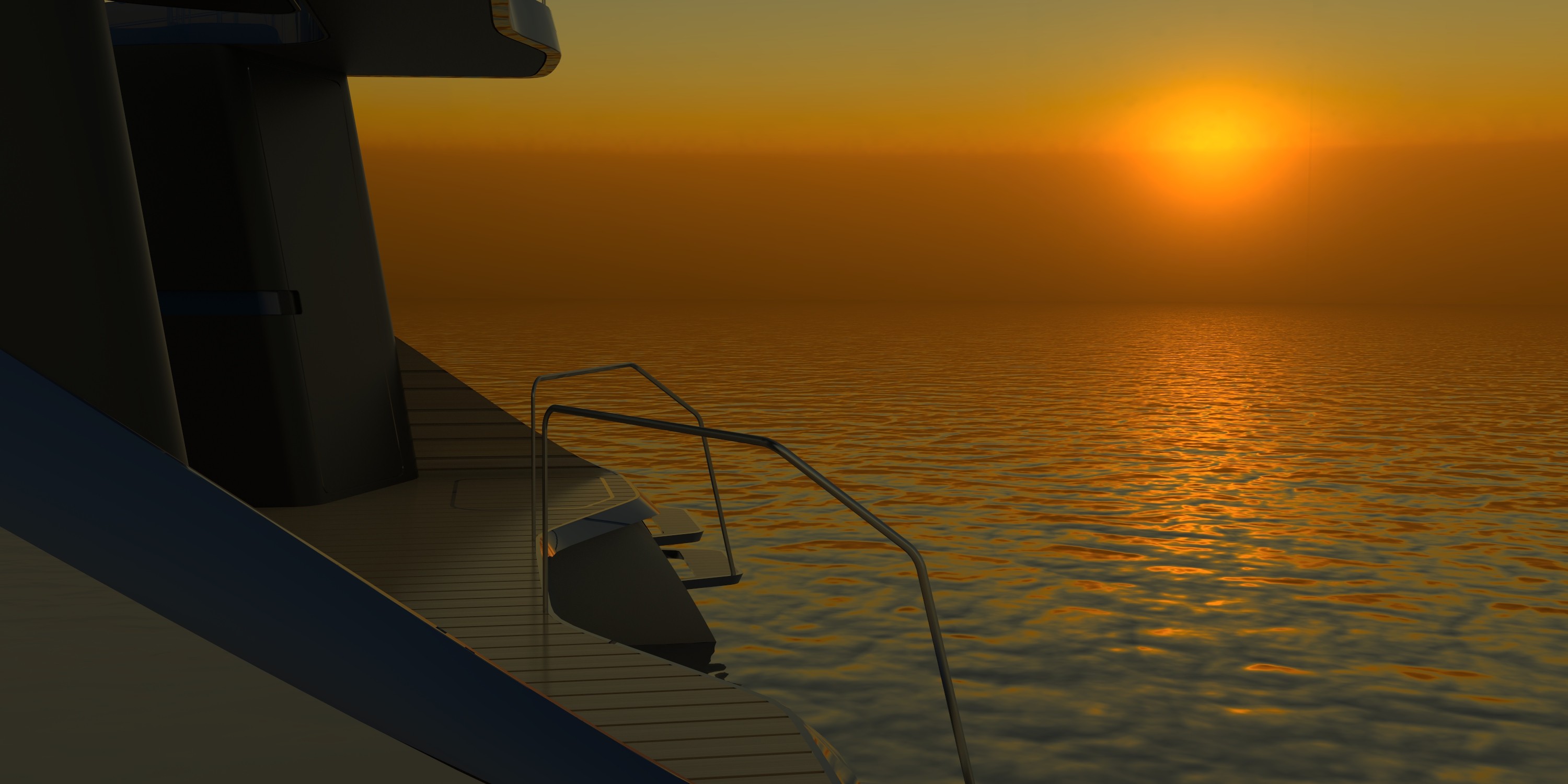 Sailing on a yacht is all about being outside! So why having an interior? The concept InsideOut focuses on placing all activities on deck and minimizing the interior. Still the Yacht offers places to sleep, a kitchen, a huge swimming area and lots of chill-out-zones, just perfect for a sunny weekend on the water!